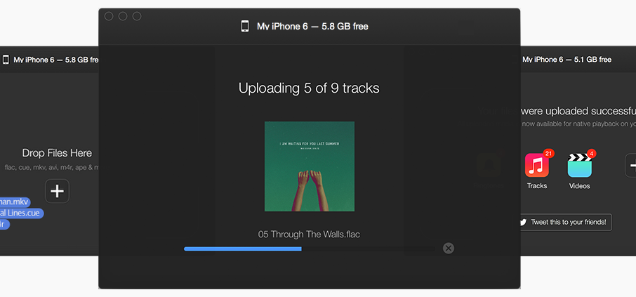 Easily upload MKV, AVI, MP4 videos to any iOS device without having to convert the files before hand. You can also upload Music in any format, such as CUE, FLAC, APE, ALAC, OGG, AAC, AIFF, WAV & more.