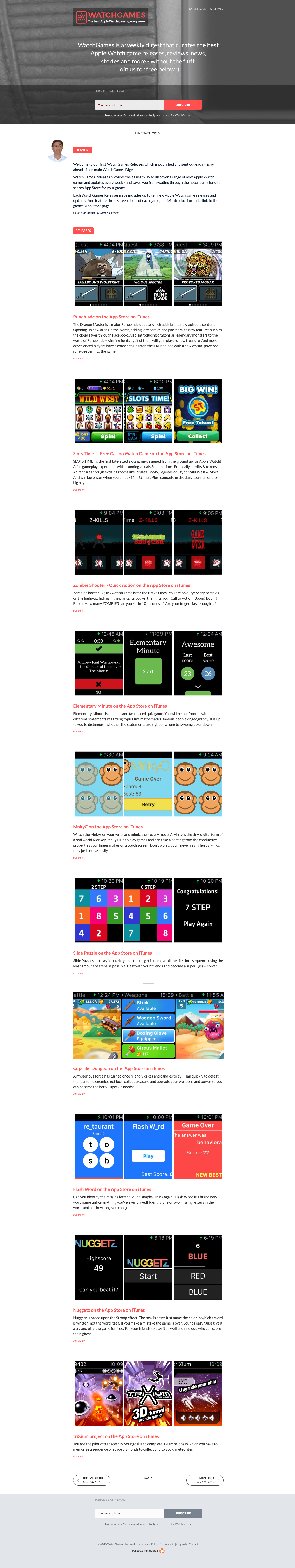 Hi, just launched yesterday - WatchGames Releases a new digest that is published and emailed out on Fridays, ahead of our main WatchGames Digest (http://watchgames.co/issues/10#s...).