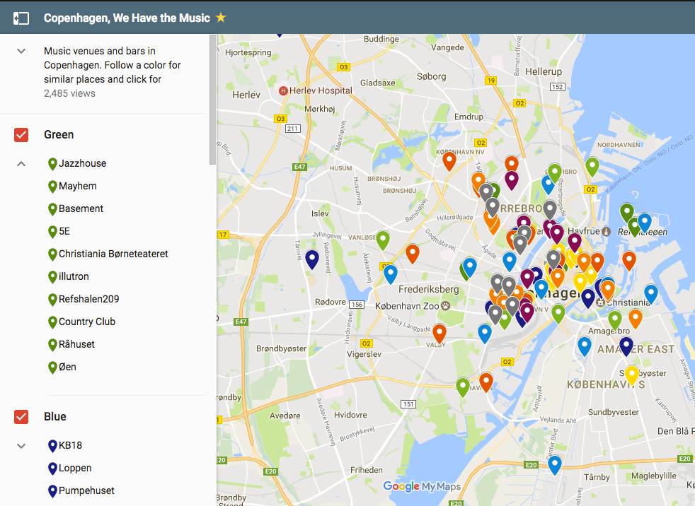 Find all music bars and live venues in Copenhagen.