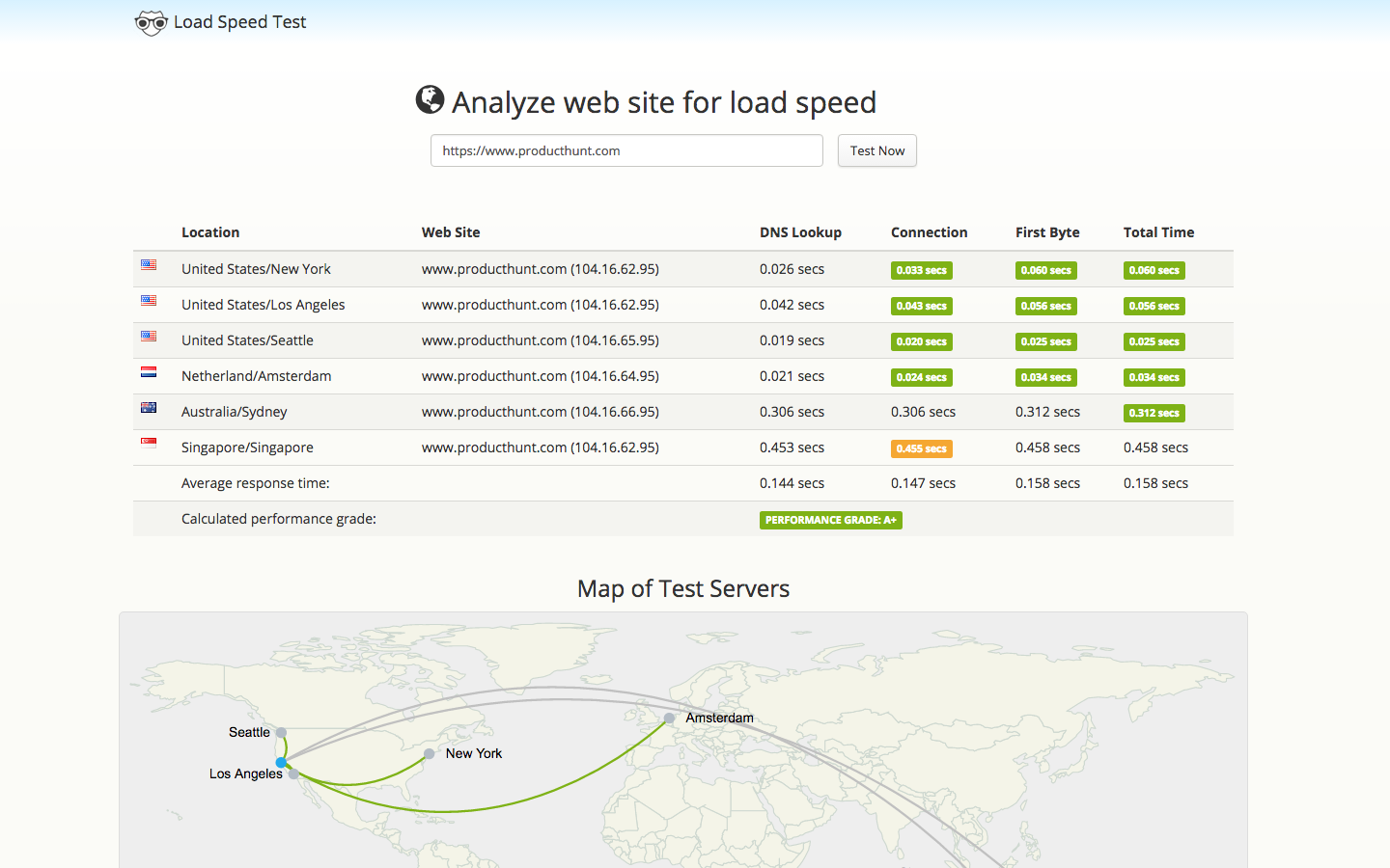 @andrewett Thank you, Andrew, for the hunt. This is my another (MVP) side project. It was inspired by needs to test my websites (server response) for speed from different locations because of visitors segmentation (USA/India/EU). Actually I test Time to first byte (TTFB)