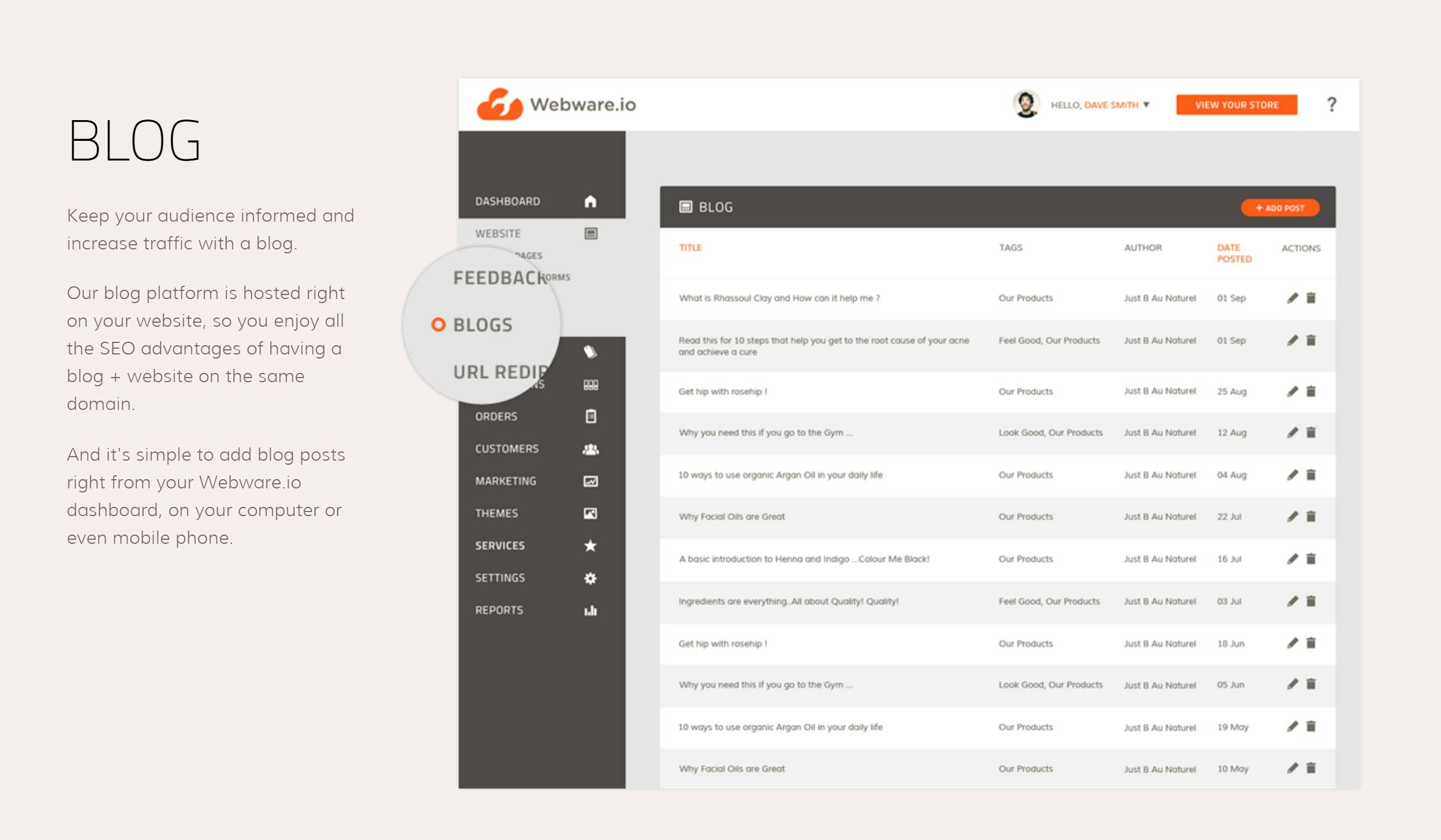 Webware is an easy to use Digital Toolkit that provides Everything a business needs to be successful online The tool includes: Build and manage a website Integrated Blog E-commerce store, and online payments Newsletter ( Email marketing ) Social Media Management