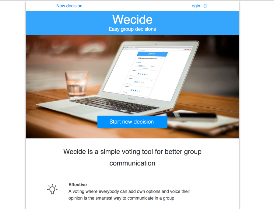 Interesting idea nad well executed. Really nice that you can use it without an account. I made one about ghosts for you to try out the responses with - http://wecide.org/w/rZxsgvcXYnLW...