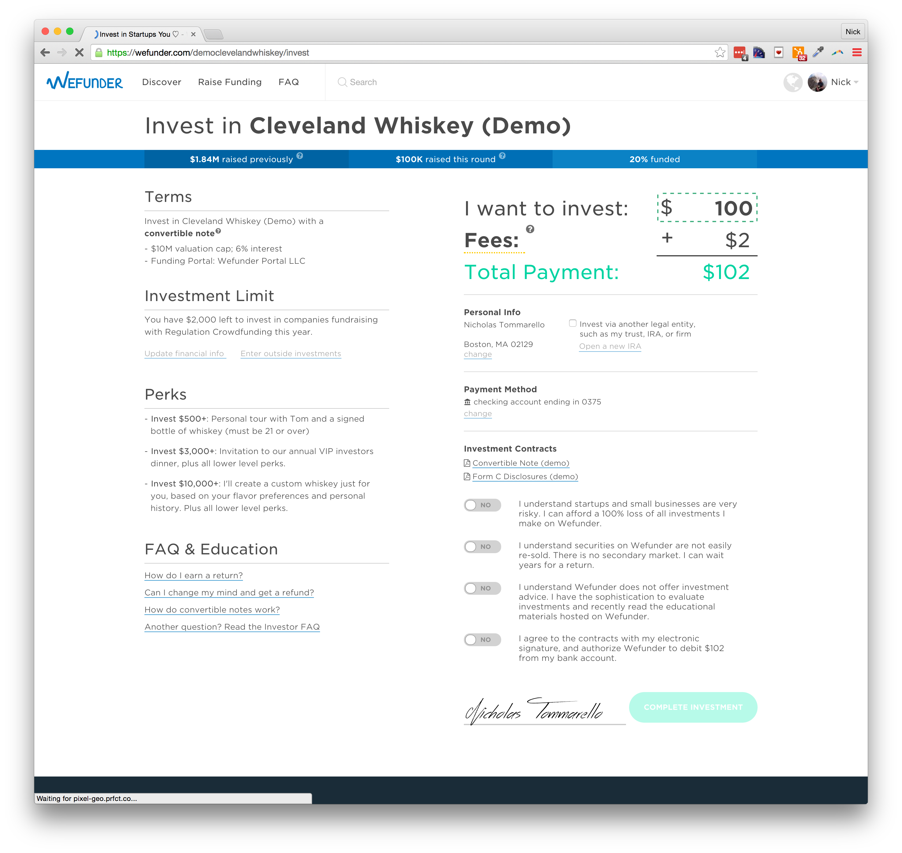 The code is deploying now and I'm going to try and make sure everyone who signed up earlier gets the deal, too. Send me an email (greg@wefunder.com) if you want to make sure that I don't miss you!