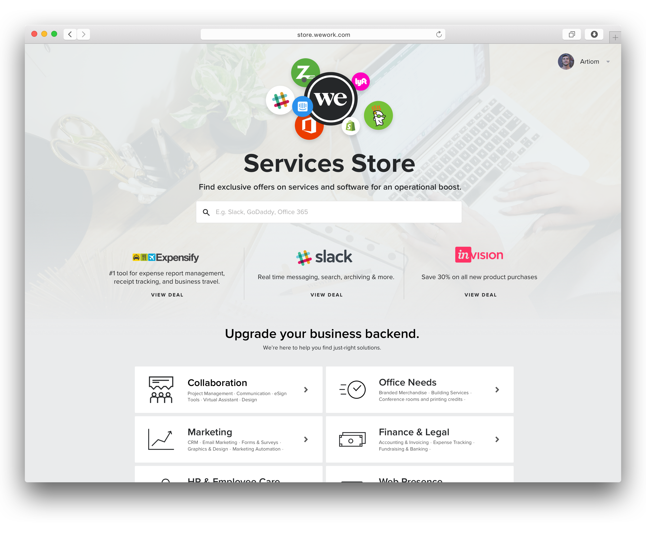 My name is Artiom from the WeWork Digital team. At WeWork, we’re constantly thinking how we can help our global community of entrepreneurs grow their businesses and excel. We are stoked to announce our newest product, the Services Store.