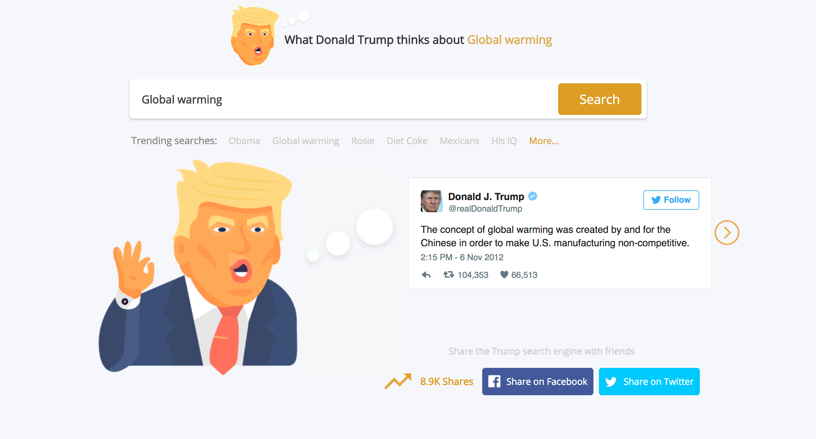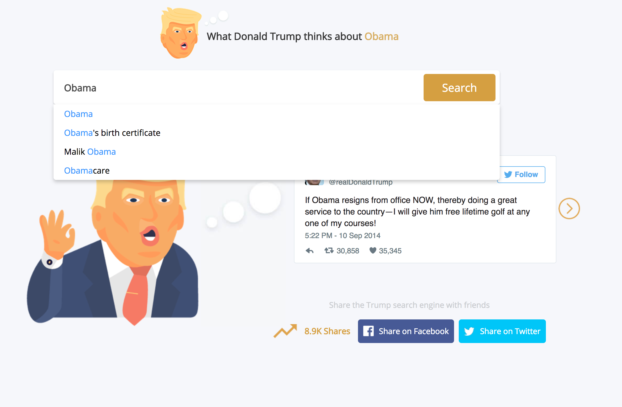 What does Donald think of? a little search engine we put together - using Trumps twitter account!