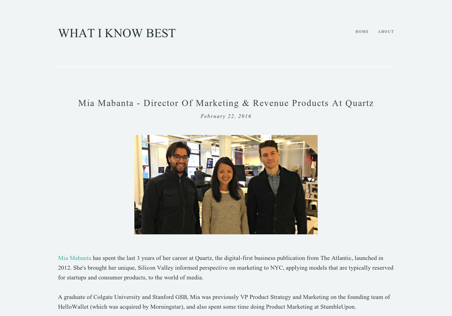What I Know Best - Mia Mabanta (Director Marketing & Revenue Products at Quartz)