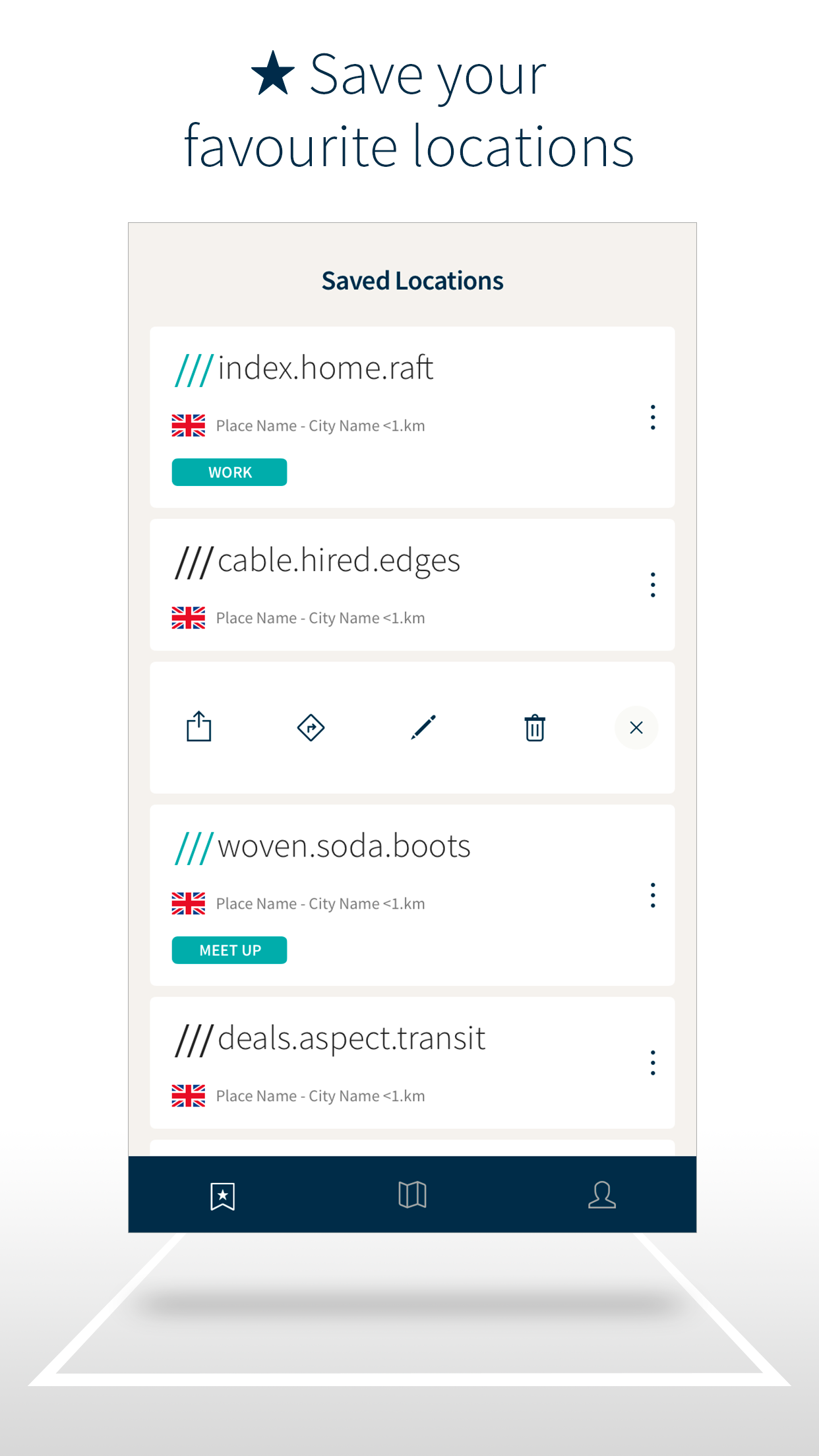 New app, now with saved locations. what3words enables people to identify and share any precise location using just three words. The world has been divided into a grid of 3m x 3m squares each with a unique address. It works in multiple languages, offline and is easier to use that GPS and more accurate than street addressing.