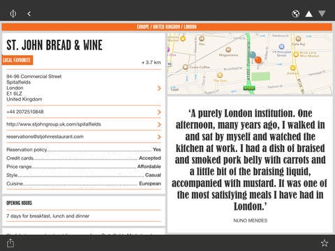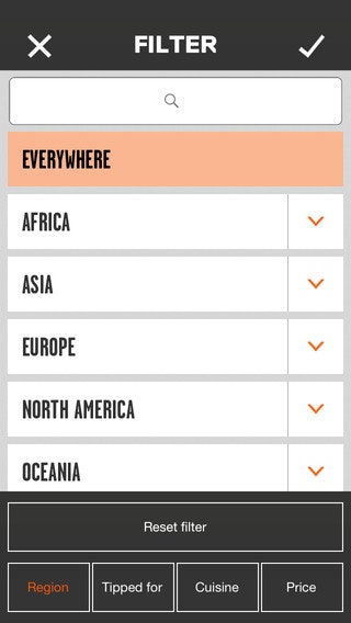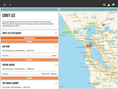 The app is based on a book by the same title and has 3000 restaurants from 70 countries chosen by 600 chefs.