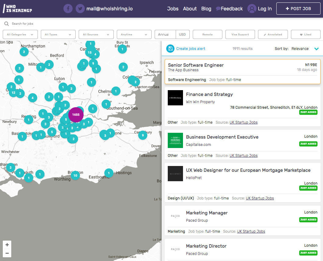 I find the UI/UX very clean and I like the idea of having the map to have the big picture of job offers. Congrats to the creators!