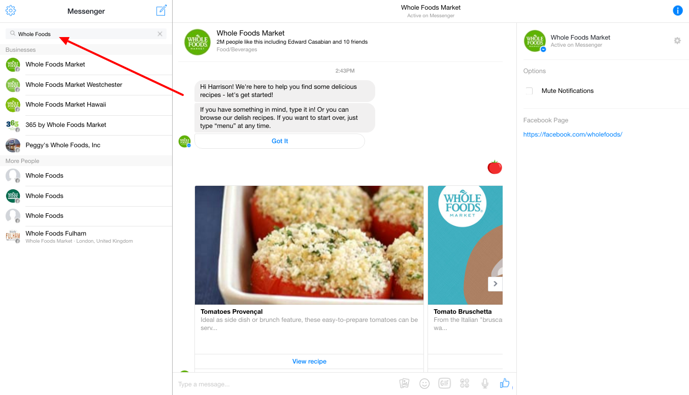 I kind of hoped you could like take a photo of an item/it's barcode in the store and send it over Messenger to get more information or recipes... I wonder if that's coming or possible?