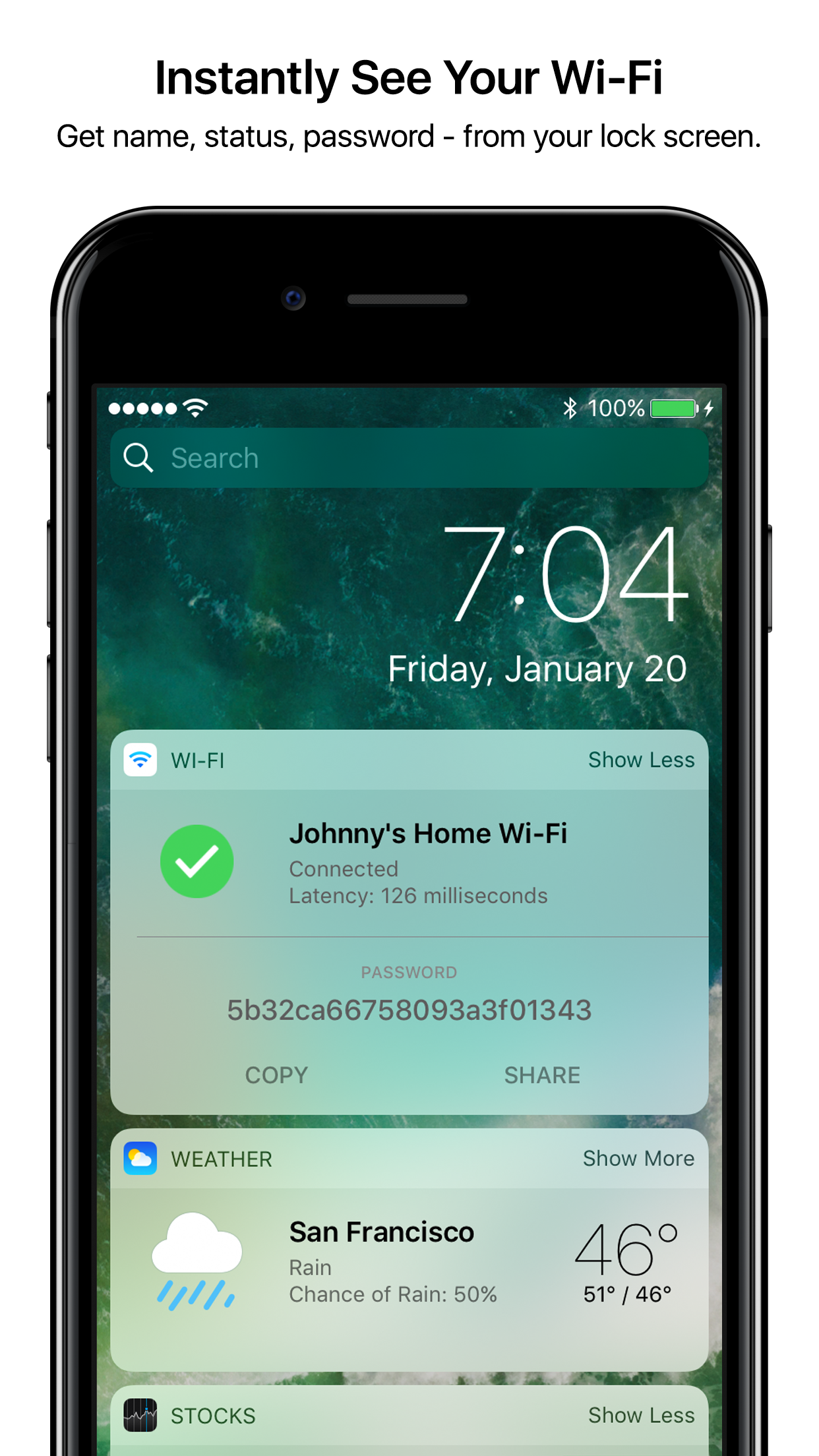 I got frustrated with fighting my wi-fi, so I built Wi-Fi Widget, which lets you instantly see, test, and share your wi-fi. Since it's accessible even from the lock screen, it's the fastest possible way to do this.