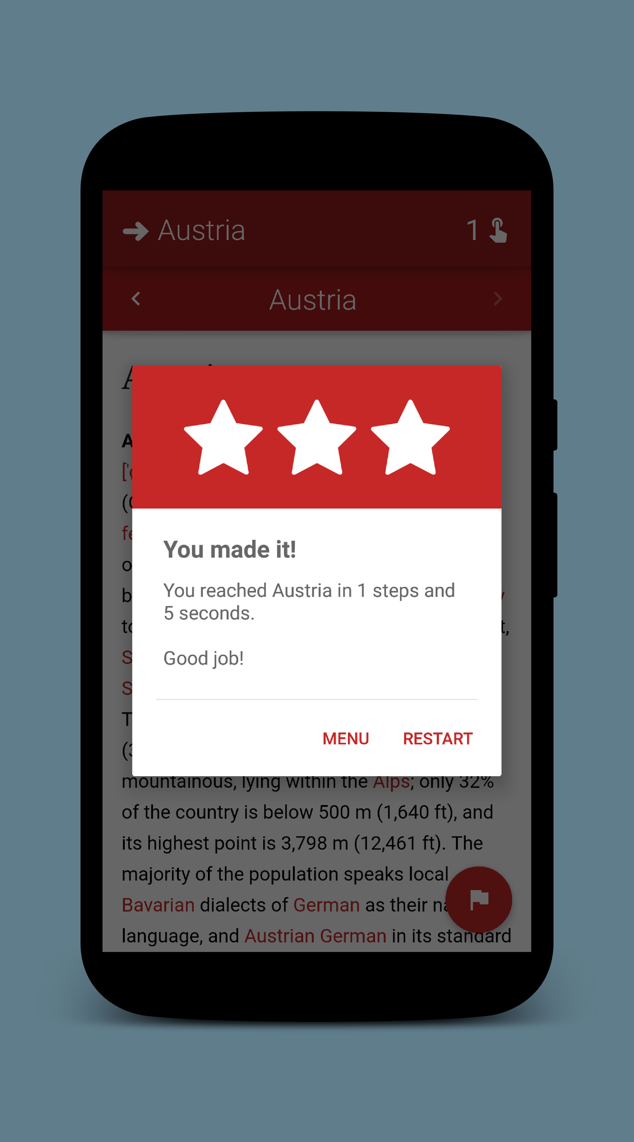 Hey! Finally I released a game I worked on several months. In WikiGame you are given two wikipedia articles, and your aim is to reach from one article to the other only by clicking the red hyperlinks in the article. Try to do it in minimum time and number of clicks. Let me know if you have questions! Enjoy!