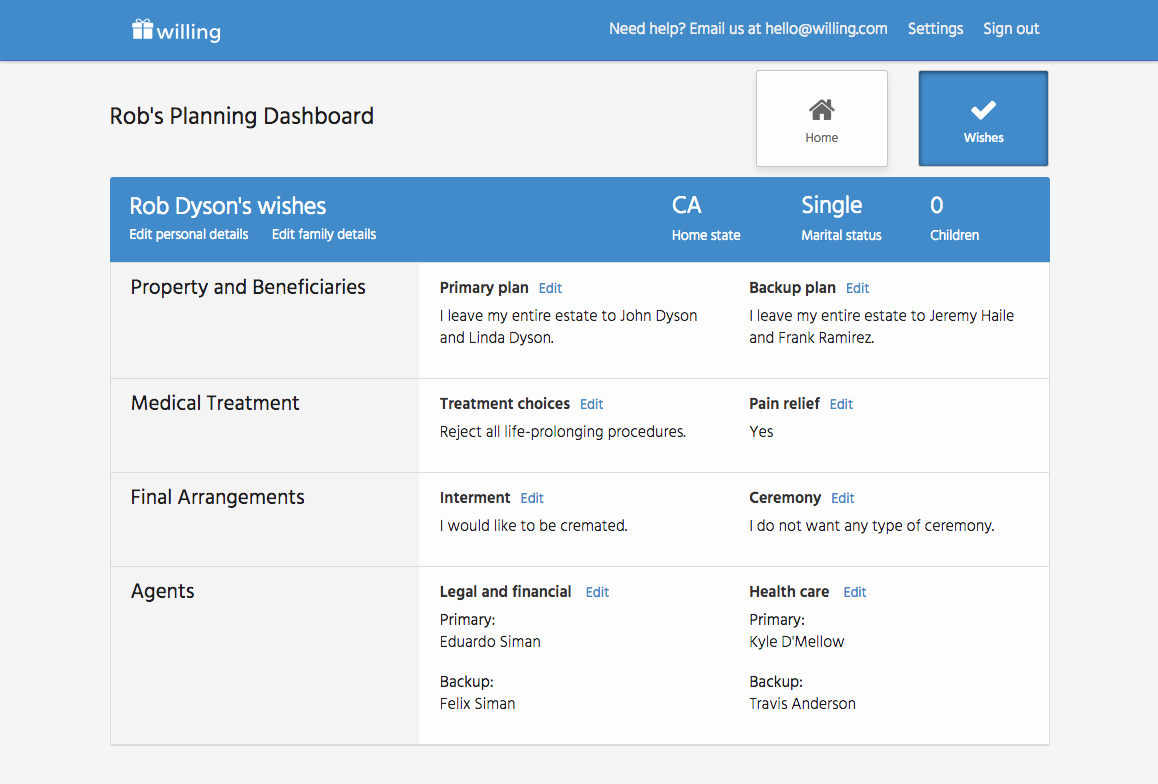 Willing is in the S15 batch of YC -- and I love what they're doing. Death is such a hard (sometimes abstract feeling) thing to talk about -- but it's something we all have to do. I hope this team makes those conversations and plans easier for everyone.