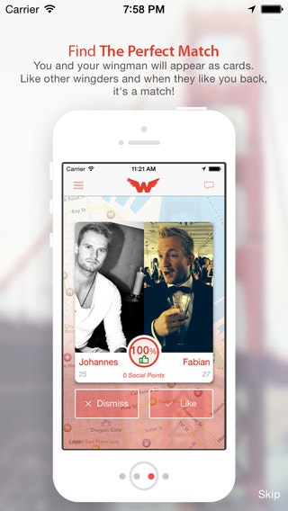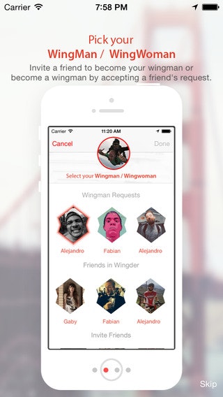 Tinder but for matching pairs of people with a Wingman/Wingwoman, created by @baierSF