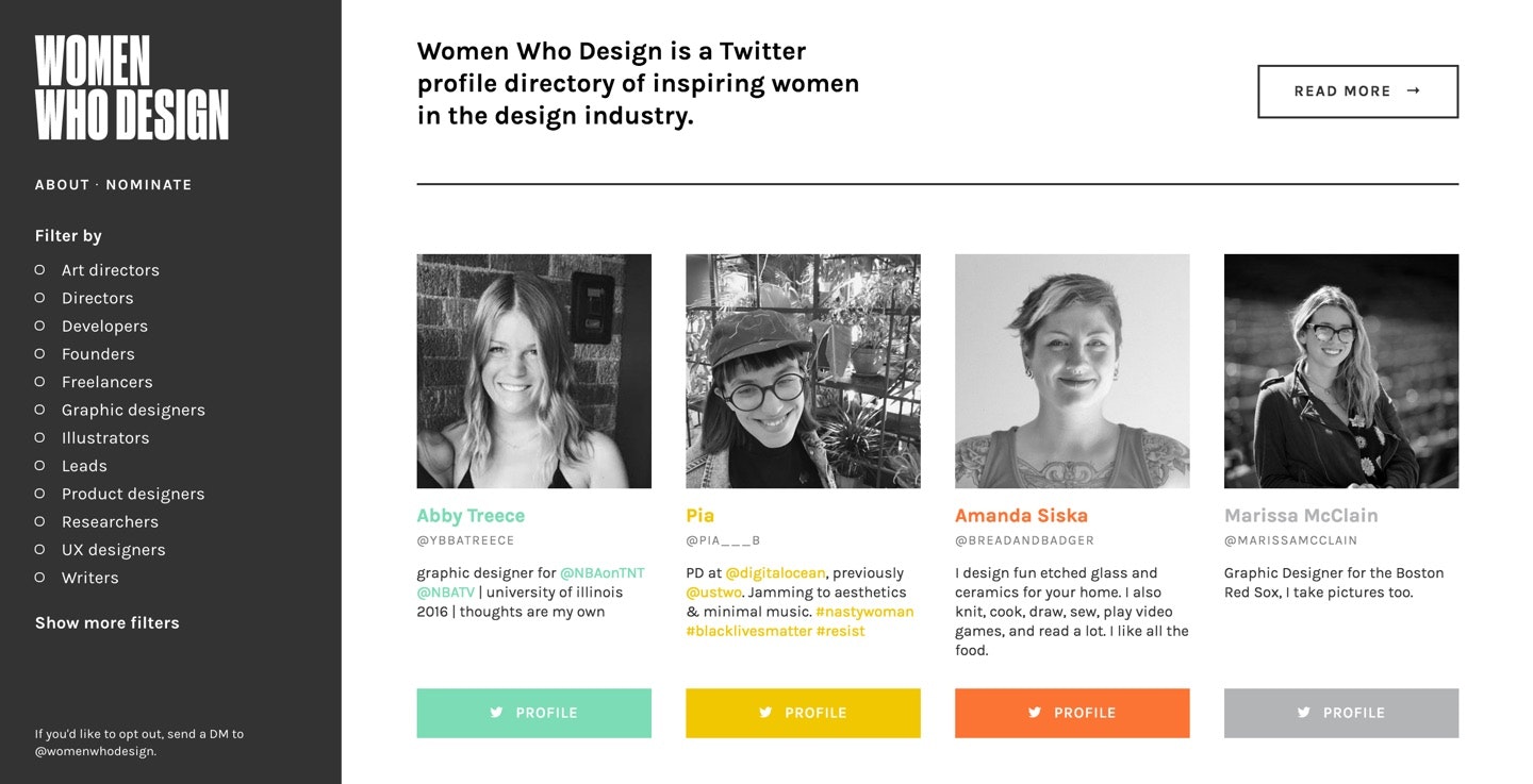 Twitter profiles of inspiring women in design industry.