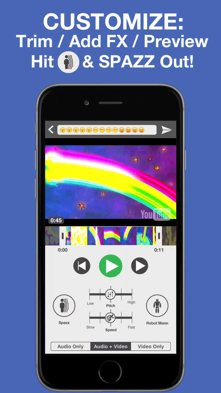 This is your next completely fun app. You send fun YouTube clips, songs (any recording, really), or GIFs to your friends, and you can edit them so that they're hilarious. You can also post those clips to Twitter and Facebook. It's like a memegen for video and music.