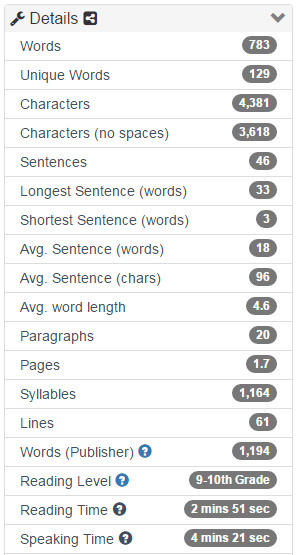 The amazing website has been my primary tool for checking word counts and measuring paragraph sizes. Not just for English, but Also Japanese and Arabic. Really easy to use and the user experience is great!