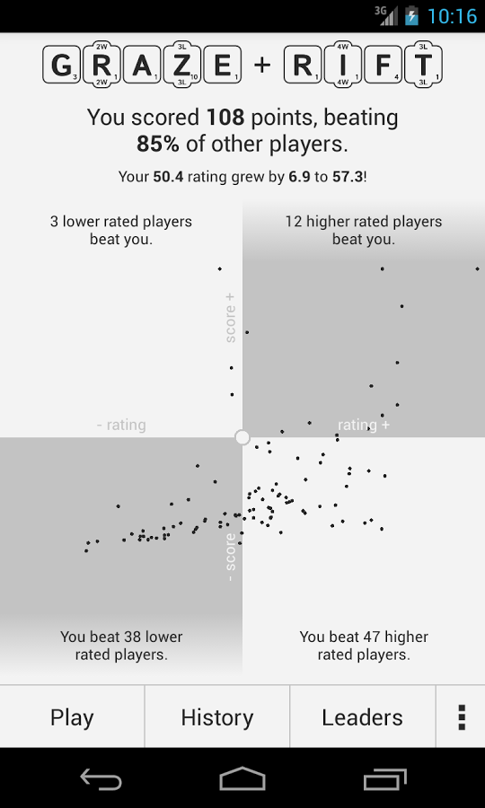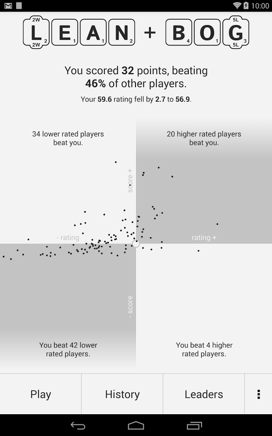 The reason I love Wordiest is that it reports how I did against 100 others, as well provides a continuous graph of this measure, keeping me coming back to try and improve. Also, their integration of Wiktionary ensures I'm constantly learning new words and getting reacquainted with ones that I'd forgotten. The only person I'm competing against is myself. Als… See more