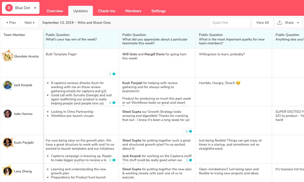About a year ago, we launched Humble Dot with the goal of building happier and higher-performing teams by improving communication. To that end, we created a set of best practices - a Monday Kickoff and a Friday Wins & Shout-outs. We felt these two processes could help users get the most of our product and, therefore, build stronger, happier teams.