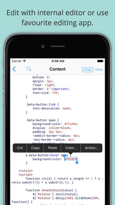 An amazing tool. Really helps me make quick edits, and works so well with Textastic. One of the best apps I have ever found, would certainly recommend to anyone that uses Github, Bitbucket, etc. So helpful, thanks so much for making this!