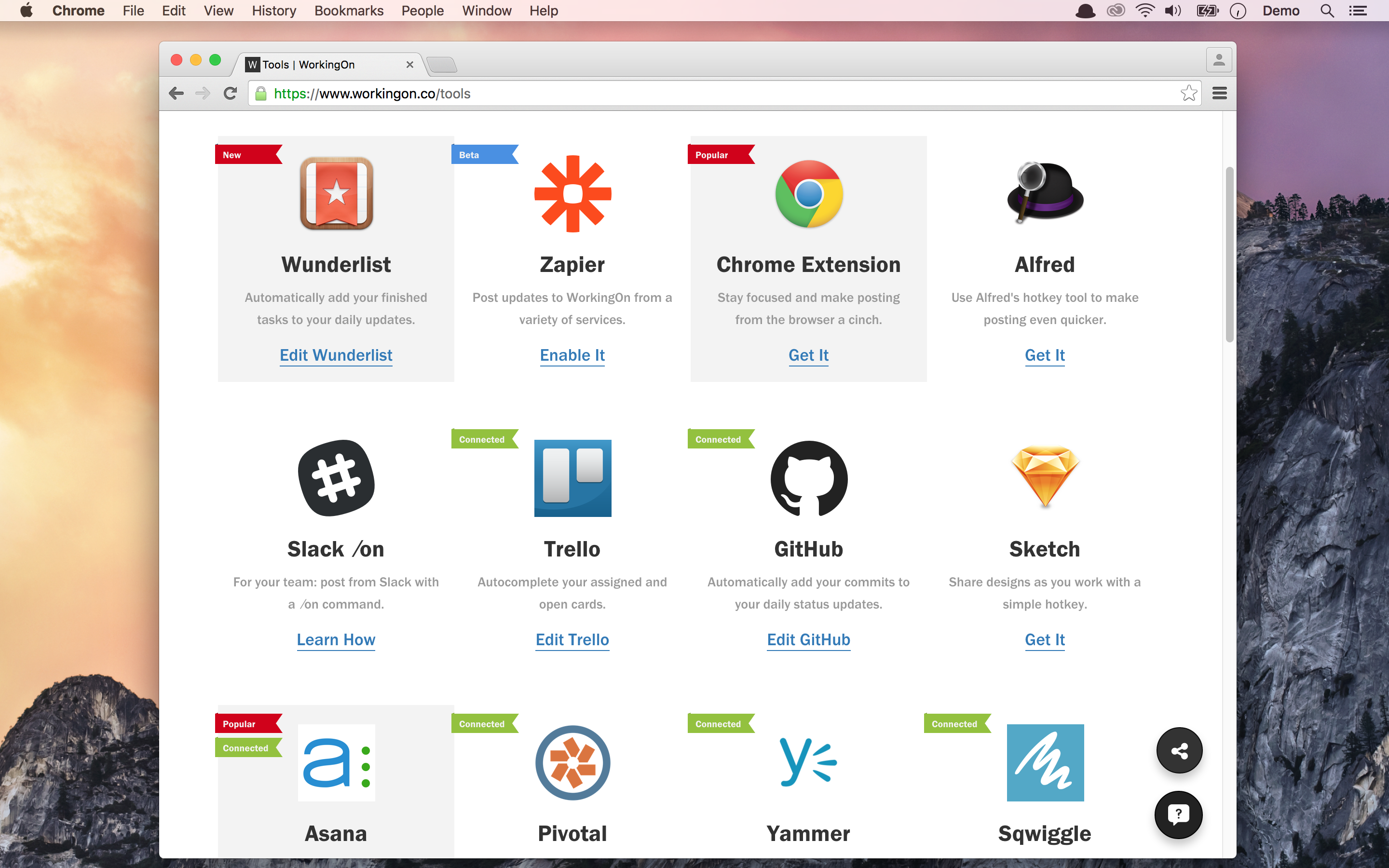 I was already addicted to workingon, these updates make it even better. I think my favorite right now is the [Wunderlist](https://www.producthunt.com/tech...) integration.