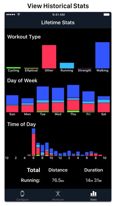 The app lets you customize your workouts similar to the way you customize your watch faces. It also have detailed statistics on your workouts.