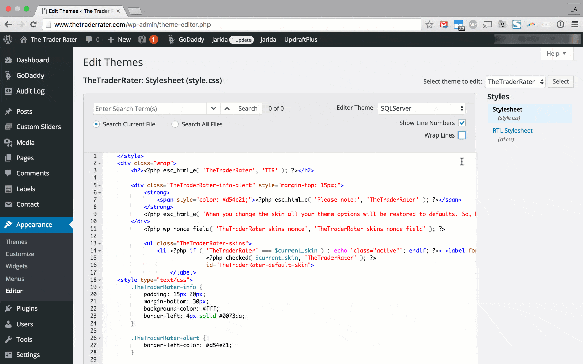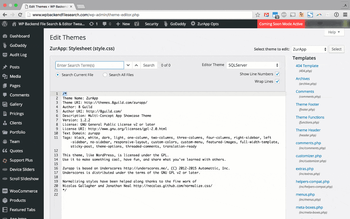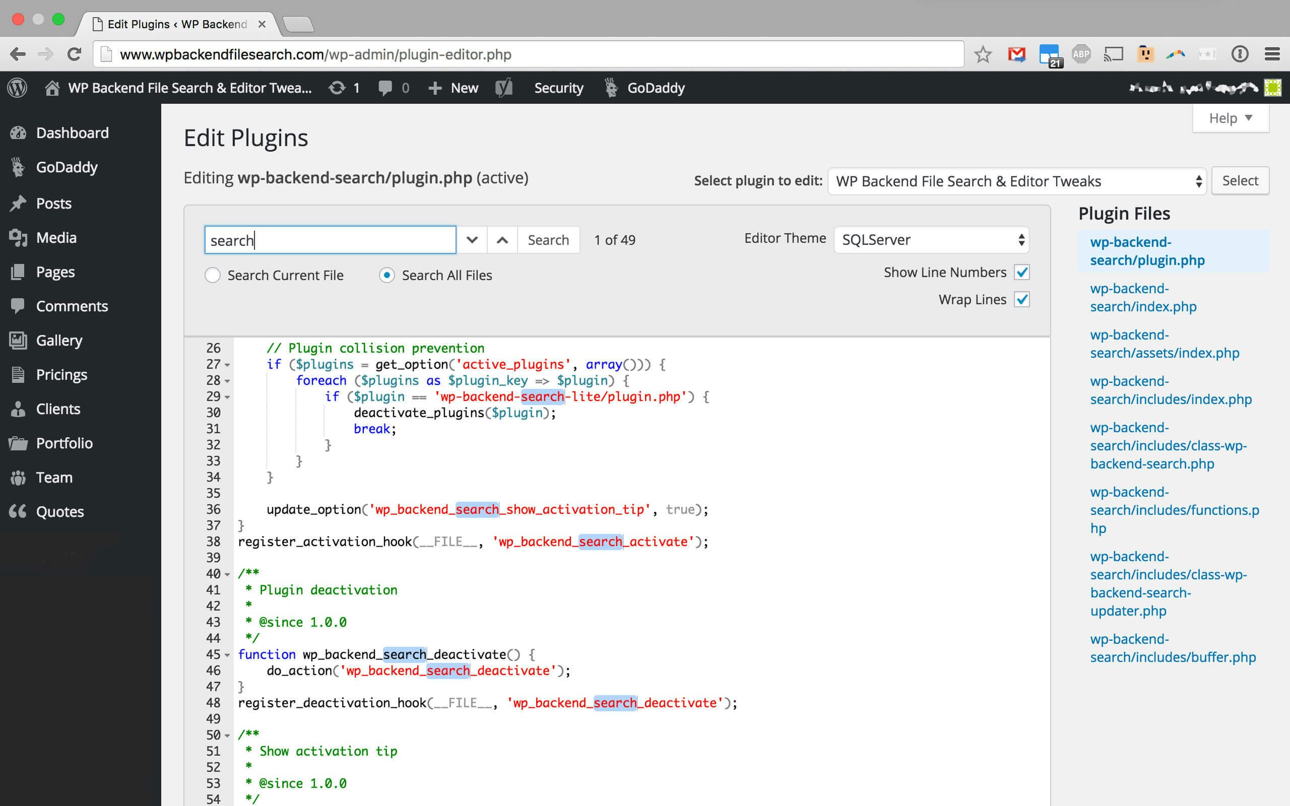 WP Backend File Search lets you search all WordPress Theme and Plugin files at once - so you don't have to open each CSS, PHP and JS file individually to find the code you're looking for.