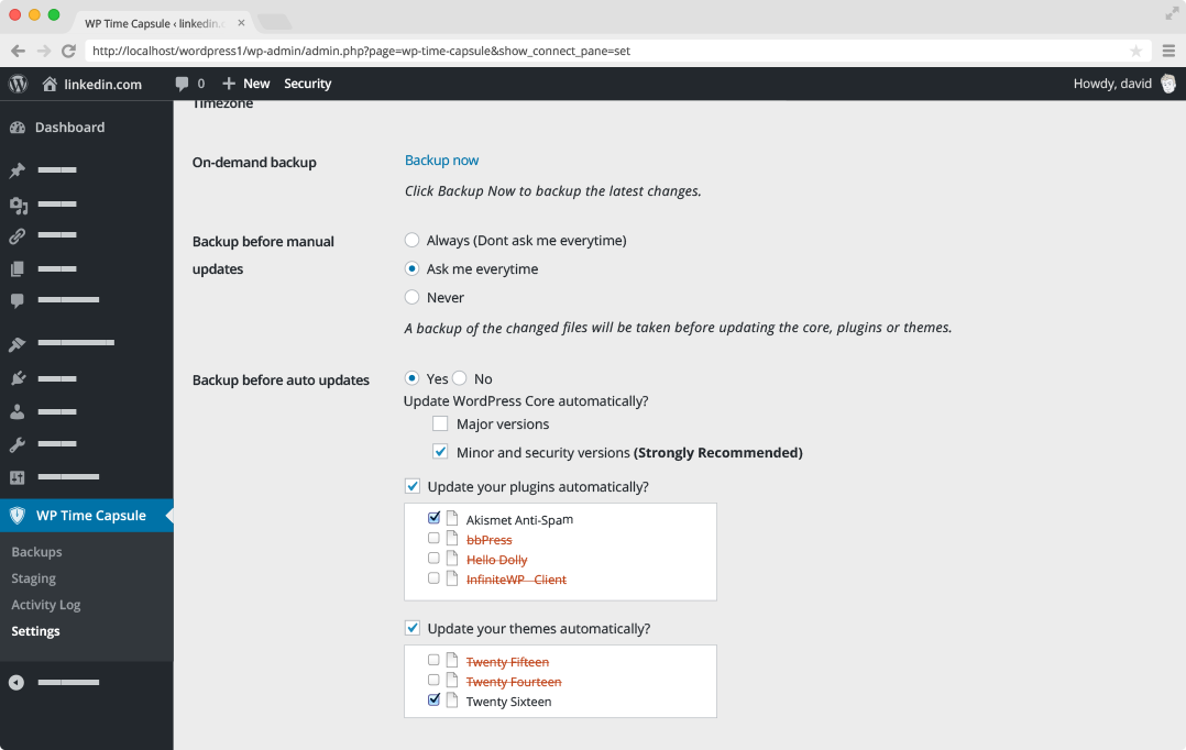 Hey Kevin - Thanks for hunting us. We are in the journey to make WordPress updates less painful. We have an incremental backup technology to backup only the changes in files and DB thereby saving your server and your cloud account some space to breathe ;).
