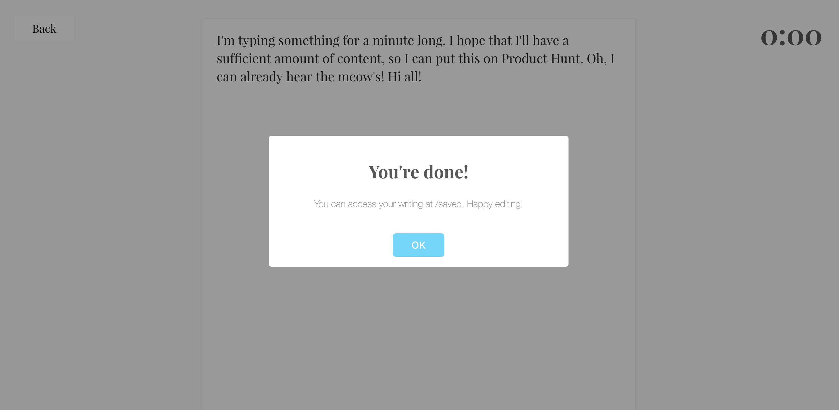 Thanks Gerald for hunting this! Write is essentially a free web-based version of Flowstate that I built for myself. For those not familiar with how Flowstate works, if you stop typing - within a fixed duration session you choose - for more than a few seconds, all your writing is erased.