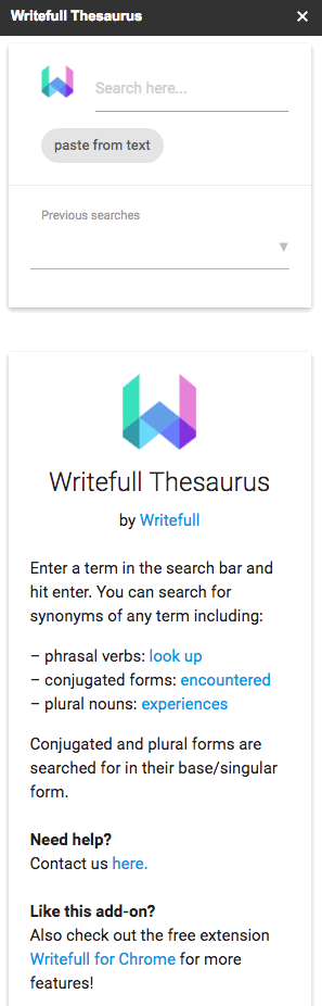 Hi guys, today we're introducing an add-on that uses AI to help you find synonyms. We use word vectors with some bits of salt here and there. This add-on has as history widget, so that you can go back to previous searches, and buttons to paste a selected word from the text into the search bar, and back to your text. Give it a go and tell me what you think! See more