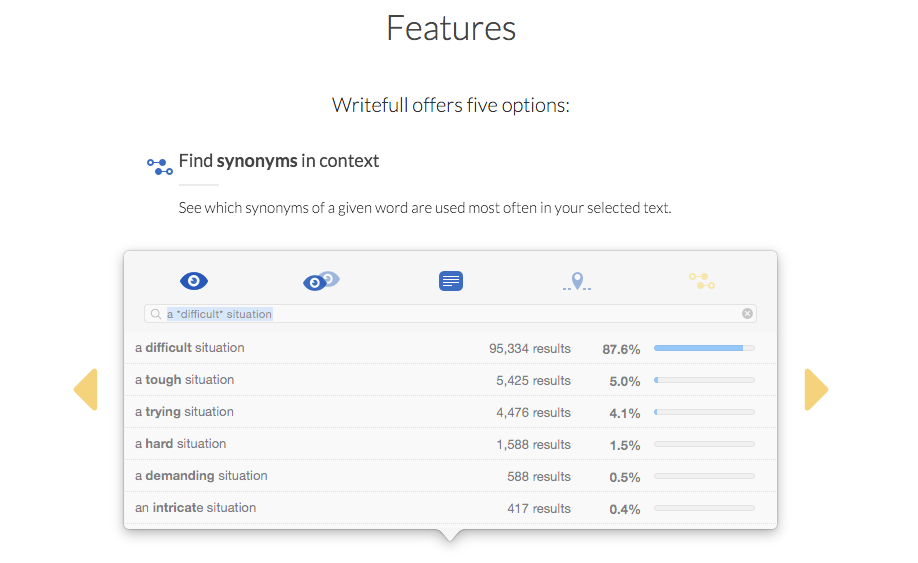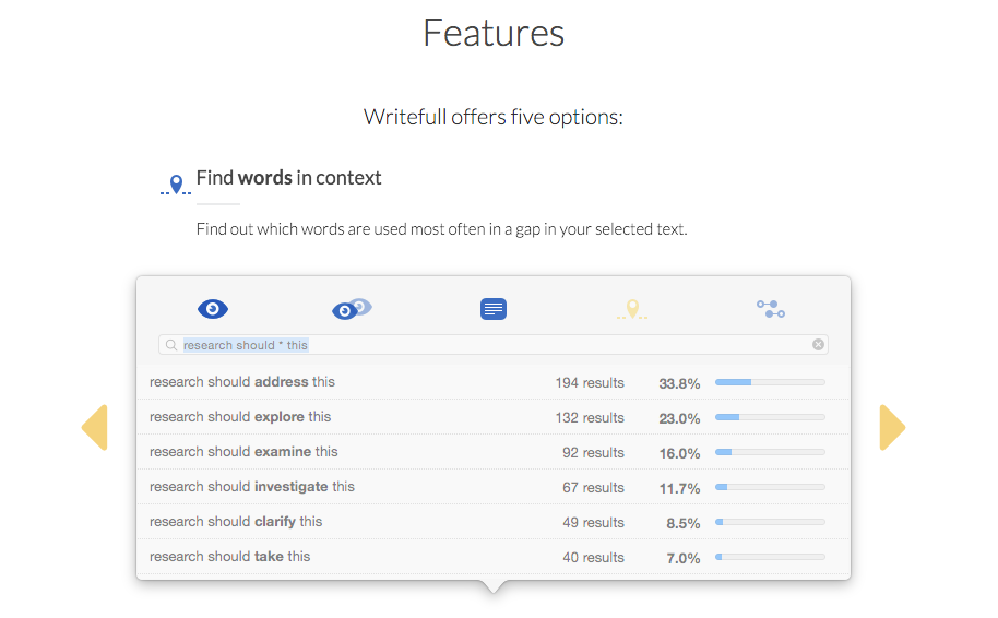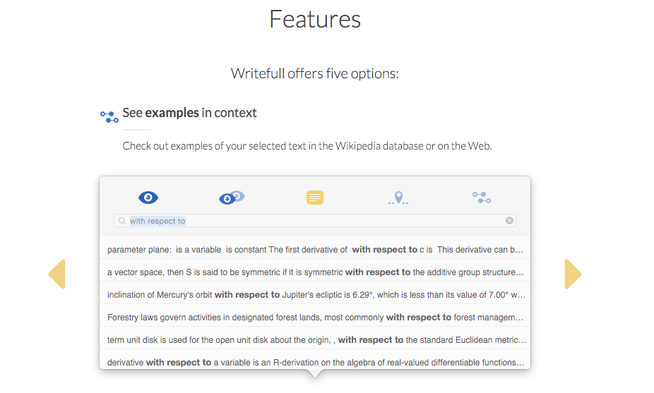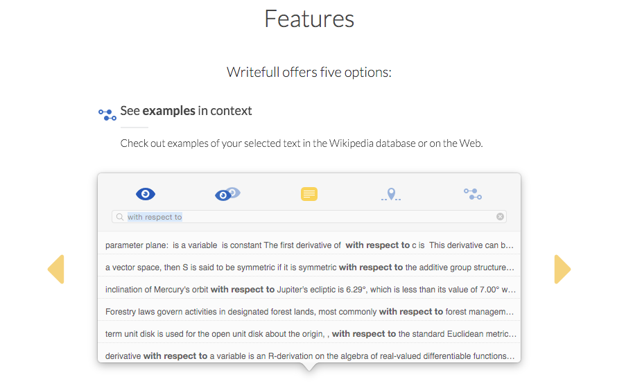 The "find words in context" is the most useful feature, imo. Sometimes I noodle on which word to use describe something and this some (sometimes) relevant results: