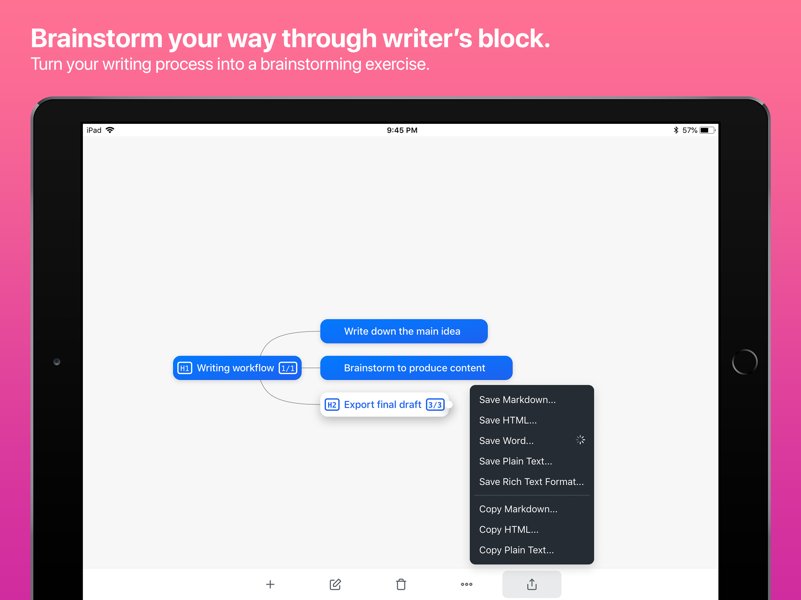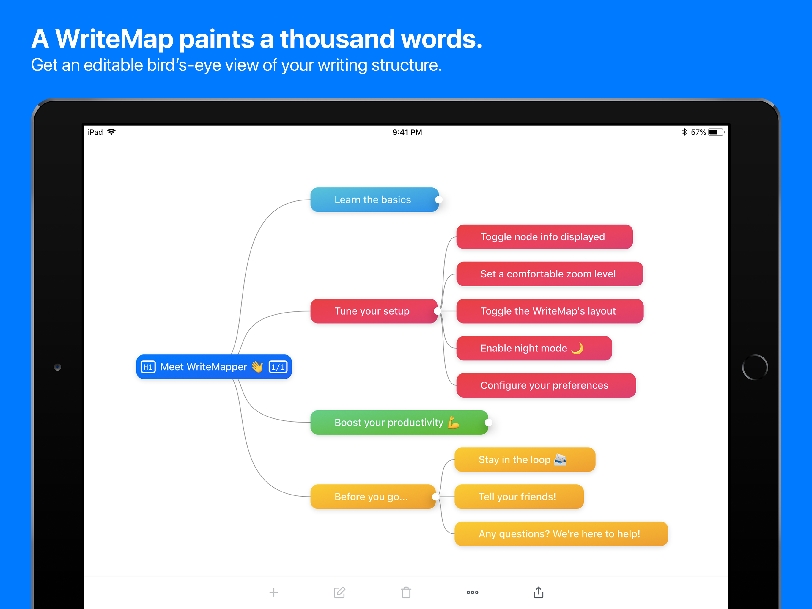 More than a year in the making, the app brings WriteMapper’s best features to the iPad, helping anyone with writing deadlines get from idea 💭 to final draft 📄 in no time using mind maps. As a quick recap, here’s a highlight of some of WriteMapper’s best features so far: