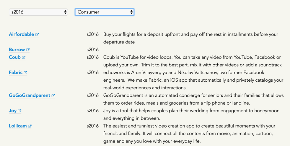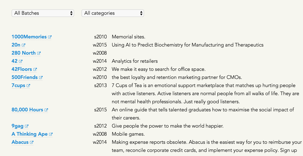 Hopefully they can add Active/Exited/Dead filters w/ info later on, like on http://yclist.com/