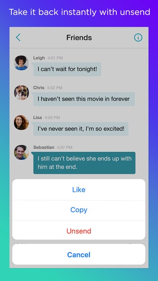 Yahoo just relaunched its messenger app after it was pulled from app stores this spring. There are a bunch of neat new features: Quickly share a high-res photo album, easily search for and send animated GIFs, and take back messages by unsending them.