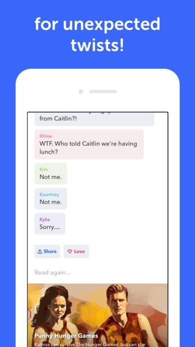 We're seeing more chat/text-based storytelling apps. Hooked 2.0 is one of the early pioneers and just a few weeks ago Wattpad released Tap.