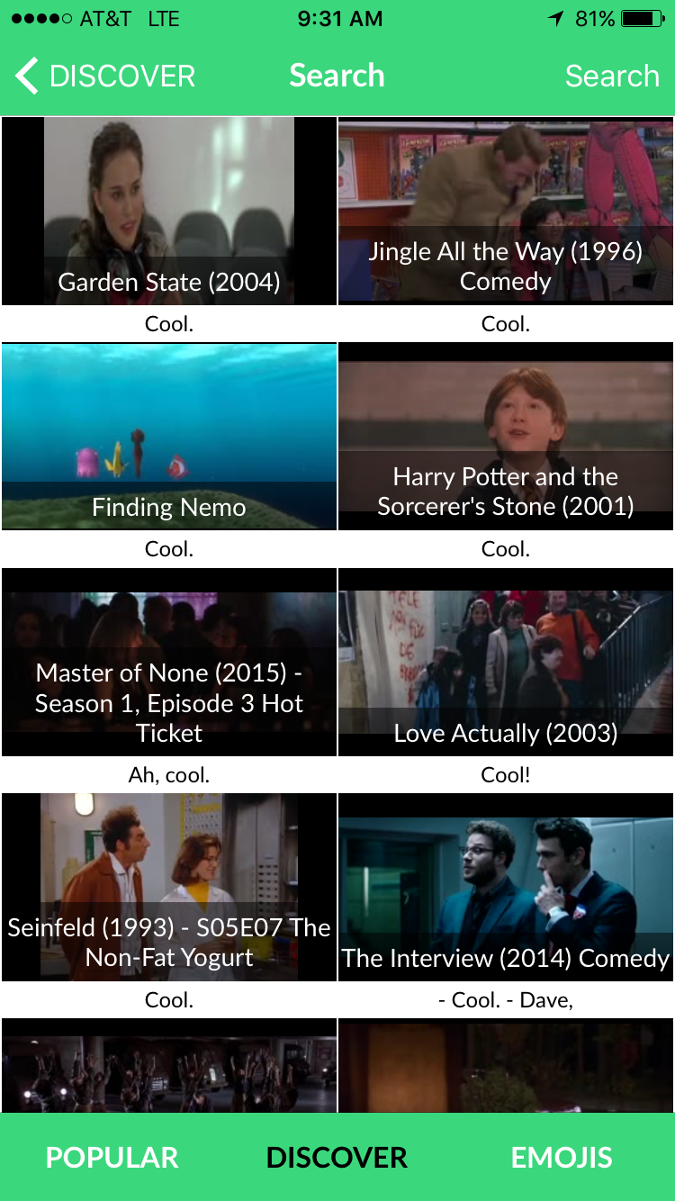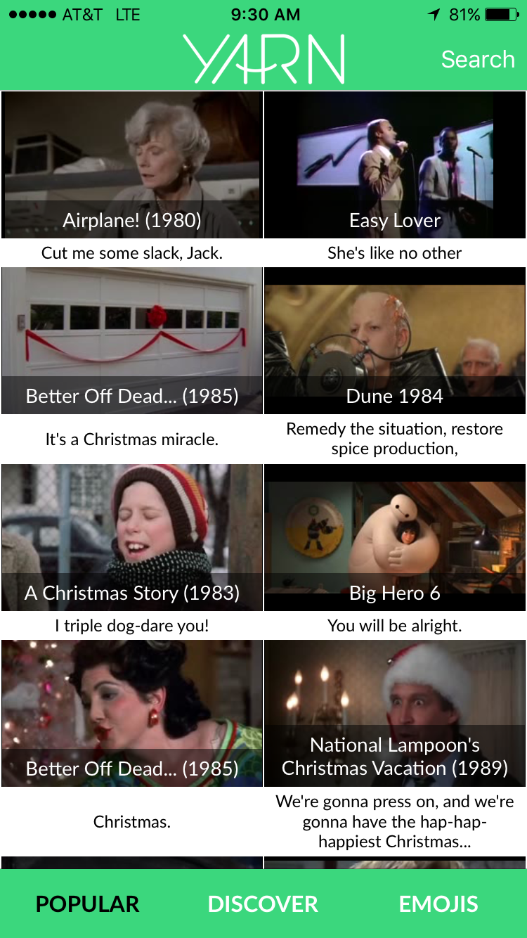 We made Yarn because we wanted to search inside of videos and use the clips in chat. We think ALL lines from movies/tv shows can be relevant, funny, ironic, or just weird in the right circumstance.