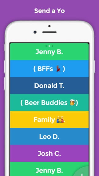 All you do is just tap someone's name and it sends them a push notification saying "Yo." There's nothing else to this app, and you can't say anything else other than yo.
