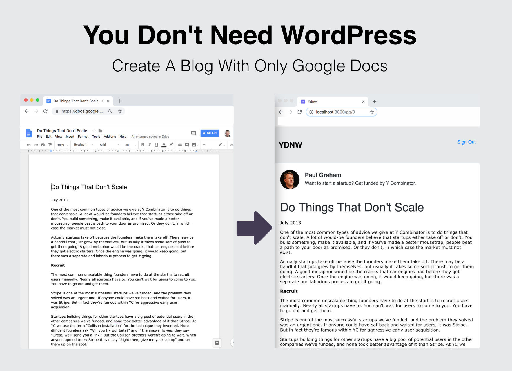 I love Google Docs so I had the shower thought to use Google Drive as a CMS for a blog. I wanted to build something: