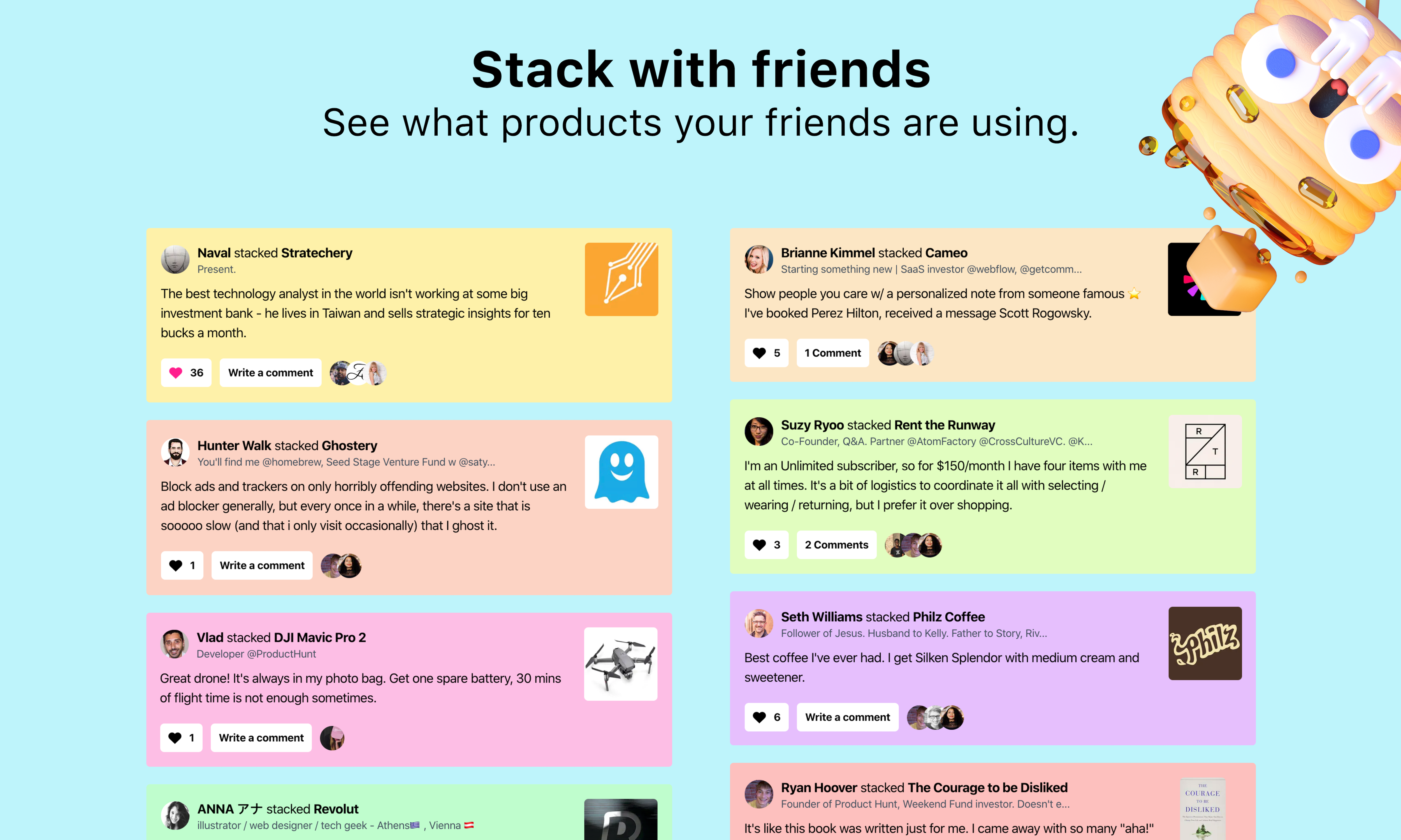 In many ways, YourStack isn't a new idea. We've been thinking about this problem space for years. We tried once and failed. Ask Product Hunt was our first attempt and in hindsight it's clear why it didn't work (I'll write a postmortem about it sometime). With those learnings and the last 6 years building Product Hunt, we're creating an entirely new site and brand. It has the same kittenish feel as Product Hunt but much more people-centric.