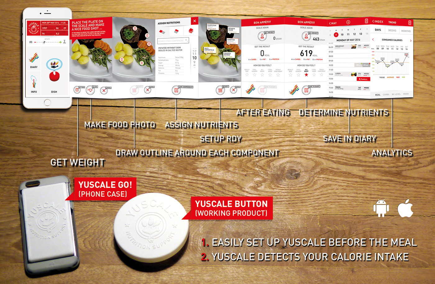 Kim and the rest of YuScale team have built a scale in a phone case. I can think of many interesting professions which might need a product like that, but first and foremost it enables you to track your eating habits and gain control over calories with just an easily applicable phone case.