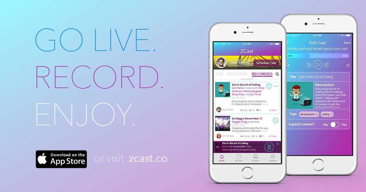 Great article on this new version of ZCast by Paul Sawers of Venturebeat -> "ZCast wants to be the defacto mobile podcasting app for creators and consumers" http://bit.ly/2cgDn8S
