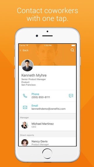 One thing that's important here that people are missing is that b/c this (very simple but very useful IMHO) app is connected up to Zenefits, all your employee contact info is already in there. IE, when companies hire someone, they hire them through Zenefits -- and that new employee will automatically show up in the app. Whe… See more