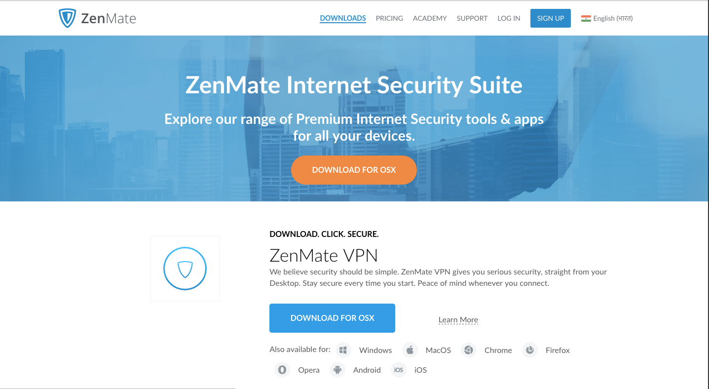 ZenMate VPN for Windows, MacOS, Chrome, Firefox, Opera, Android, iOS.