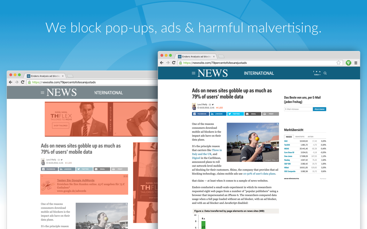 Blocks malware, trackers & security threats