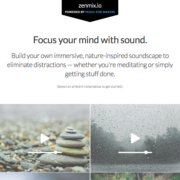 zenmix.io allows you to combine both ambient noise and nature sounds to build your own focus-boosting soundscapes.
