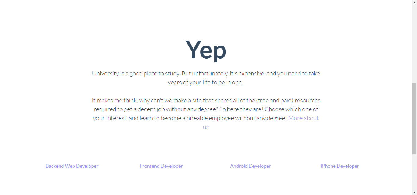 New startup here, and I want to try to solve some an educational problem related to several jobs that don't really need you to get a degree to be a hireable person. I've never seen a proper site that tries to connect people that want to work in a specific field (like web developer, designer, etc.) and the resources they need to be hireable.… See more