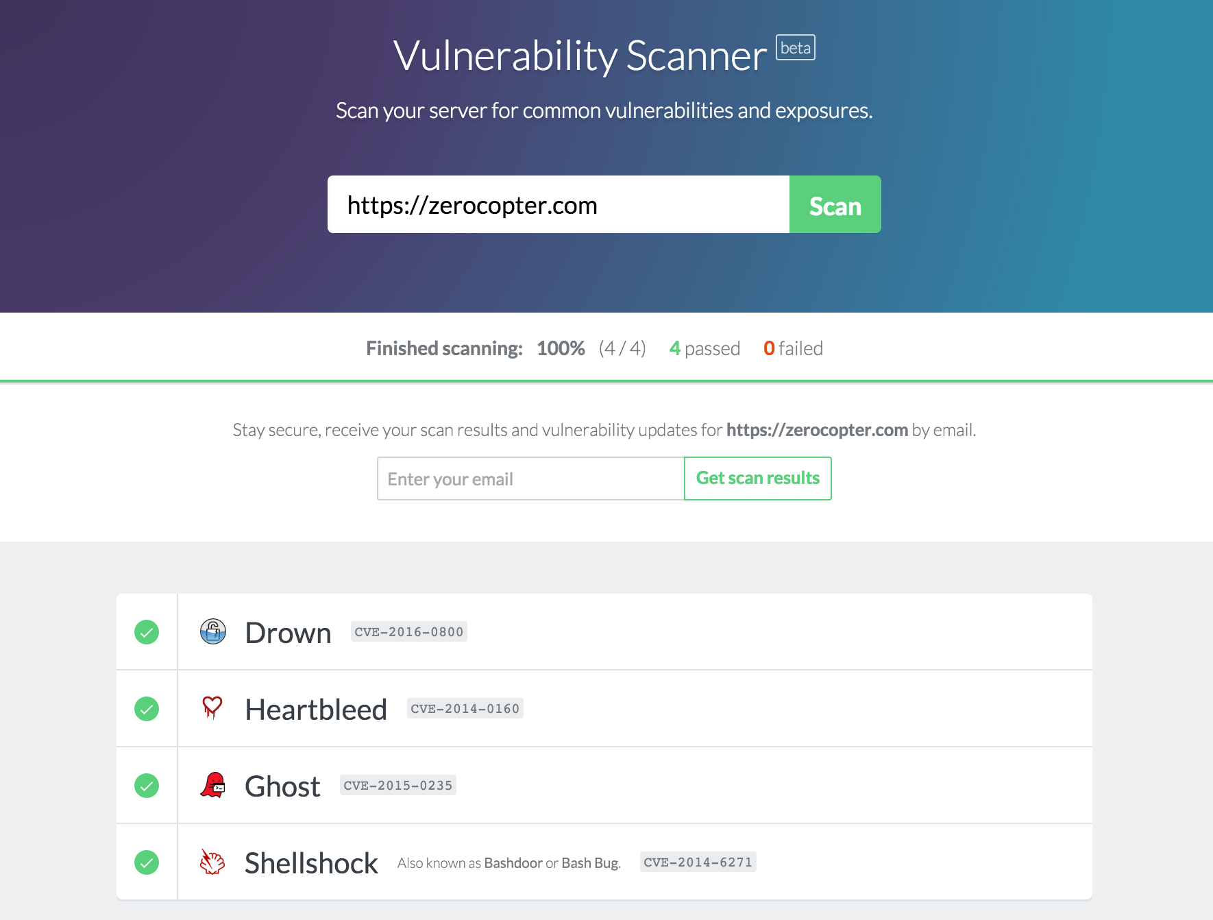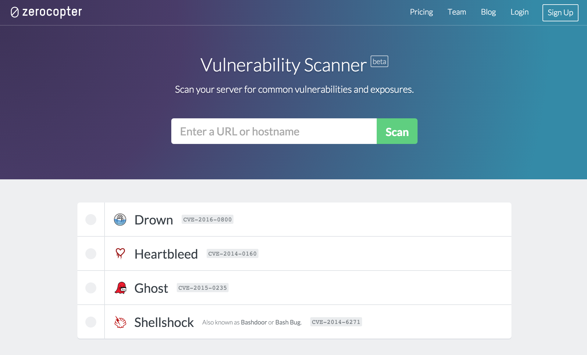 Last weekend we held a little hackathon with our entire team. With the recent GHOST vulnerability in mind we figured it would be helpful if people had a super easy way to check if their website is secure. So in a day and a half we built this zero-day scanner: Just type in your website's domain and we'll automatically check to see if it's vulnerable to GHOST,… See more