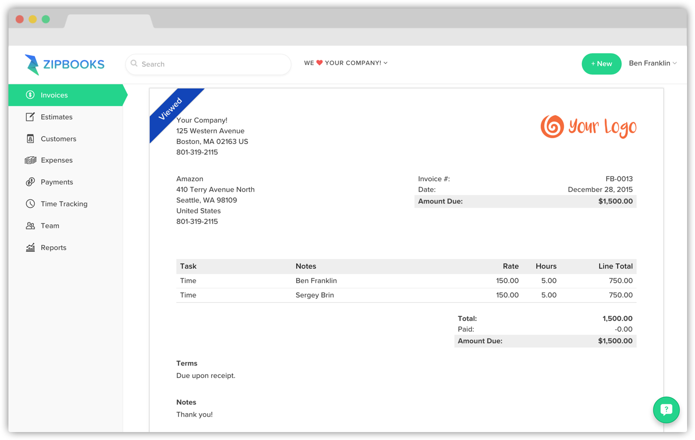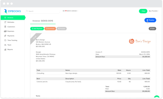 I've been using zipbooks since March and it's been great! Great team. Love it for quick invoicing.