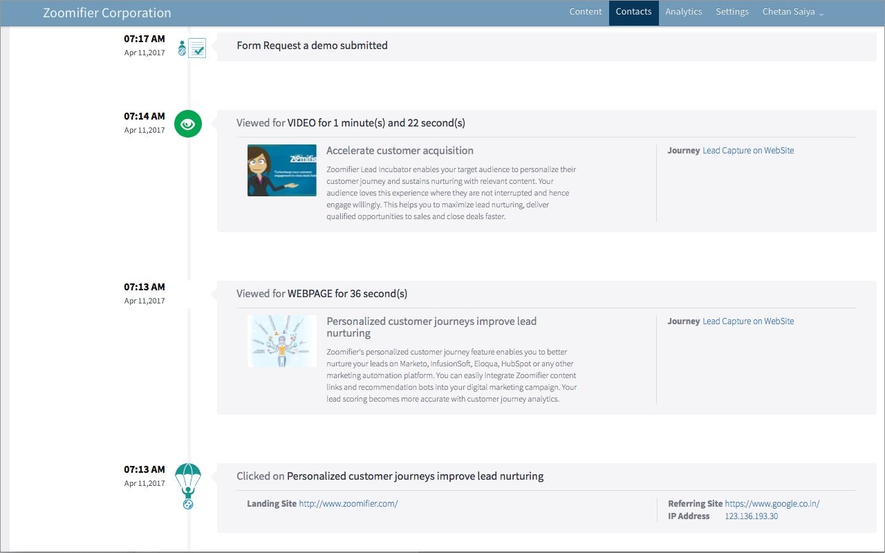Hi Everyone, we are trying to change the way businesses engage with their customers. By enabling customers to personalize their own journey, we believe that they engage willingly. We built a comprehensive platform for customer engagement and have rolled out our first product - Zoomifier Lead Incubator. The product enables you to configure content recommendat… See more