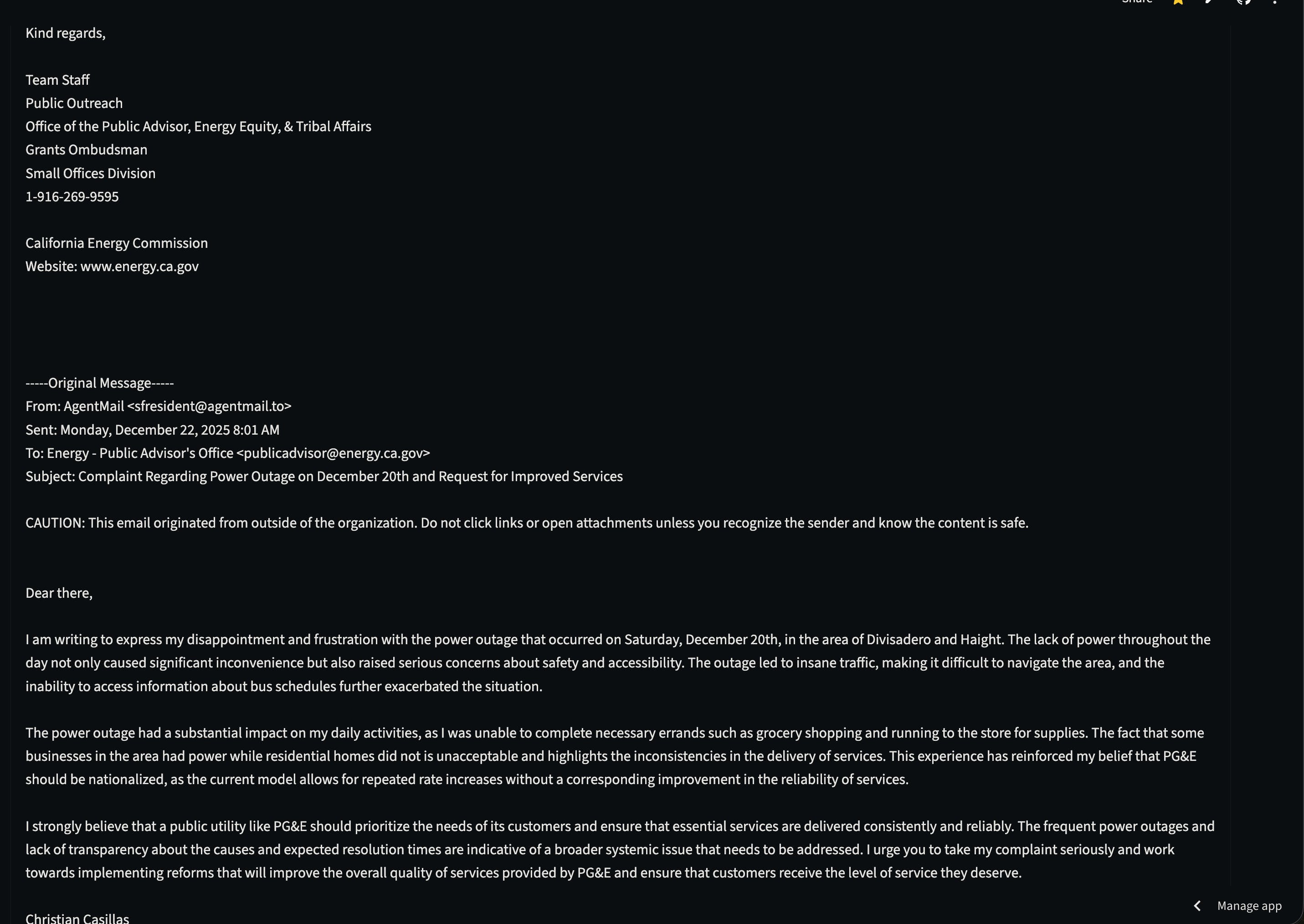 Used AgentMail a few months back for a project during a big SF power outage everyone was mad about, set up a bunch of inboxes people could pick from to send complaint emails to PG&E, plus shared public inboxes for transparency. AgentMail handled all the email stuff, literally plug and play. Built the whole thing overnight, and launched it on reddit in the morning, that's how easy it was to use. Congrats on the launch!